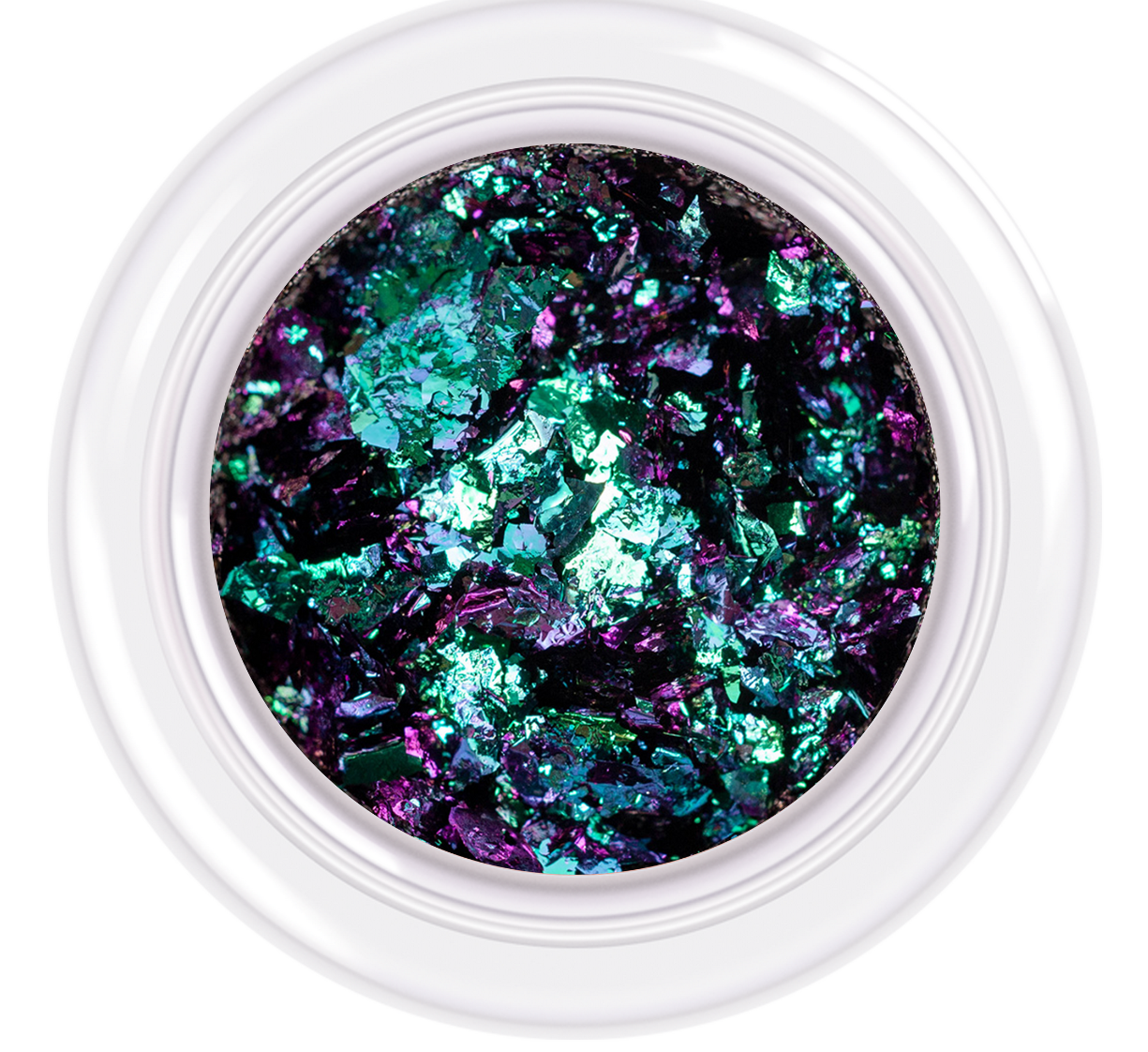 Duo Chrome Flakes by KODI PROFESSIONAL have duochrome properties — when applied, they create a metallic finish with beautiful color shifts. The product has a relatively large particle size, and its texture resembles flakes.